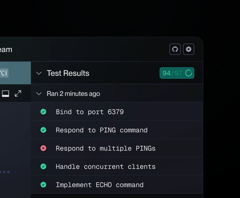 Rebuild the tools you use every day with your own hands. Recreate Redis, Git, SQLite - from scratch, in your language, in your IDE.